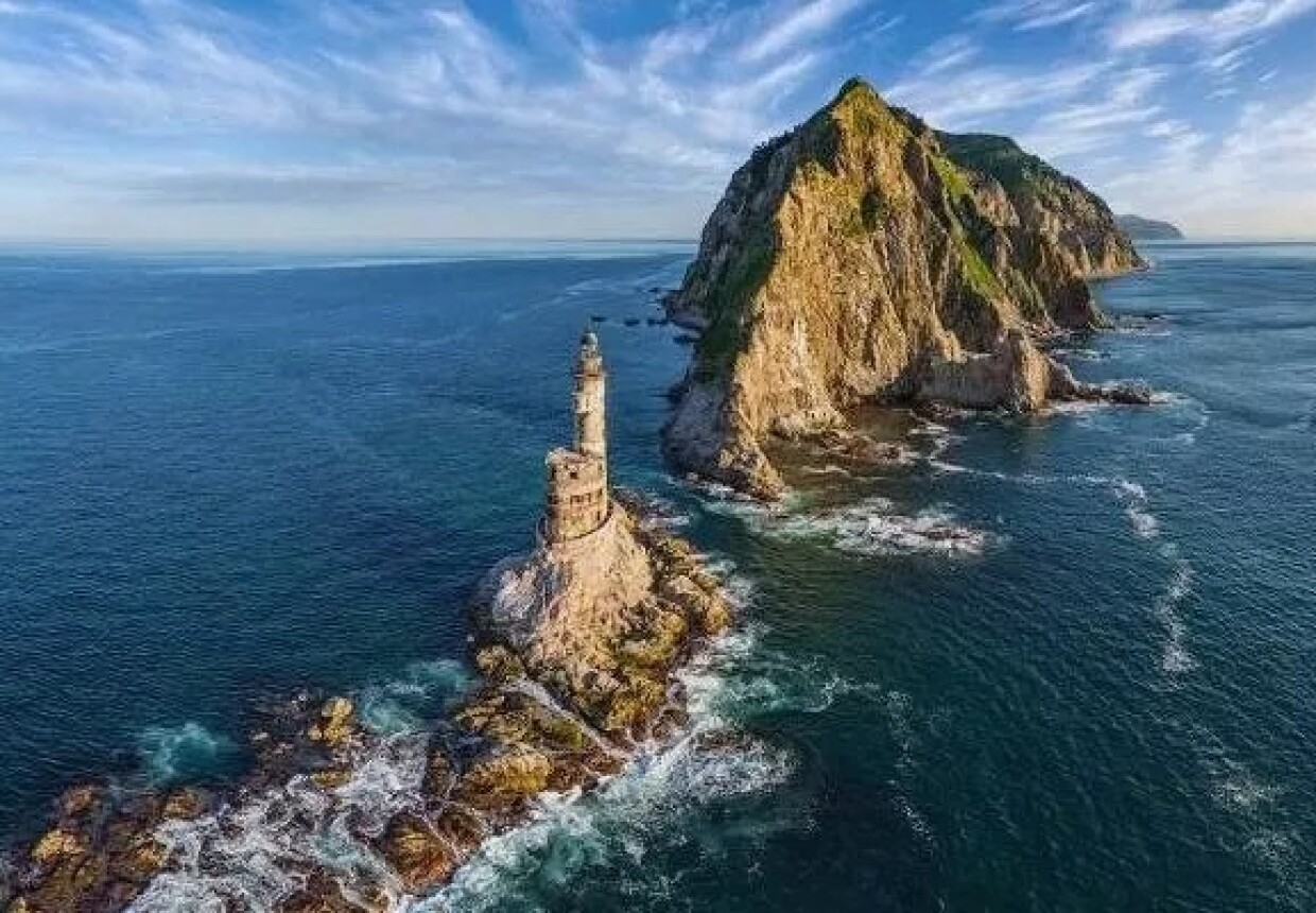 Дорога на маяк Анива проходит по Анивскому заливу, где вы насладитесь красотой великолепных гор, морским воздухом и водопадами, падающими вниз, а по дороге, если посчастливится, вас сопроводят касатки, дельфины и нерпы, пока на горизонте не появится он… маяк-призрак, выглядывающий из-за тумана….