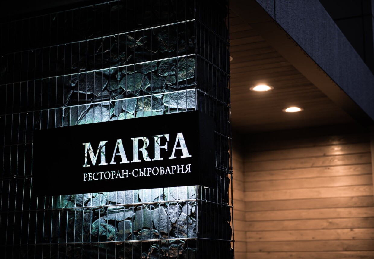 Ресторан-сыроварня MARFA – аутентичный ресторан авторской кухни, где гармонично сочетаются традиции и современность. Панорамные окна с видом на лес и дровяная печь в центре зала, выполненная ярославскими мастерами, создали атмосфер настоящего швейцарского шале. В отделке стен и потолка использовано натуральный карагач, а массивные люстры изготовлены дизайнерами по индивидуальному проекту. Кухня ресторана представлена несколькими направлениями.