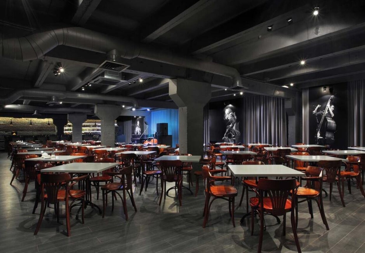 Внутри — все атрибуты томного вечера: полумрак, портреты джазменов, афиши и, конечно, сцена. Танцпола нет, так что бронь столов разлетается лихо — звоните сильно заранее.
