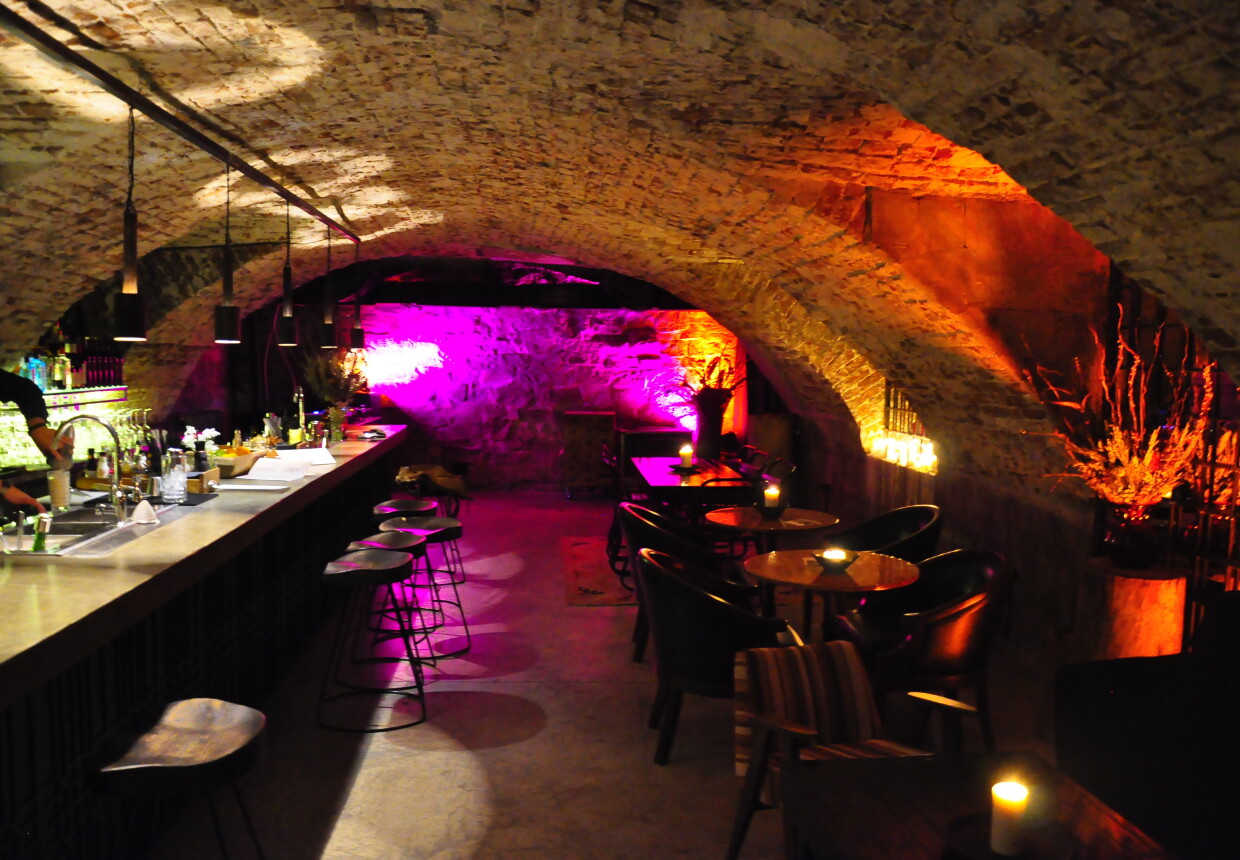 Внутри встретились атмосфера древнекитайской крепости и дух вечеринок. Низкие кирпичные своды потолка и старинные вазы уживаются с неоновыми огнями и звоном бокалов.