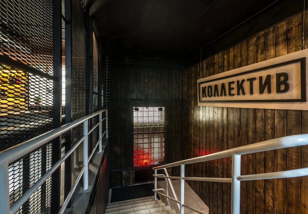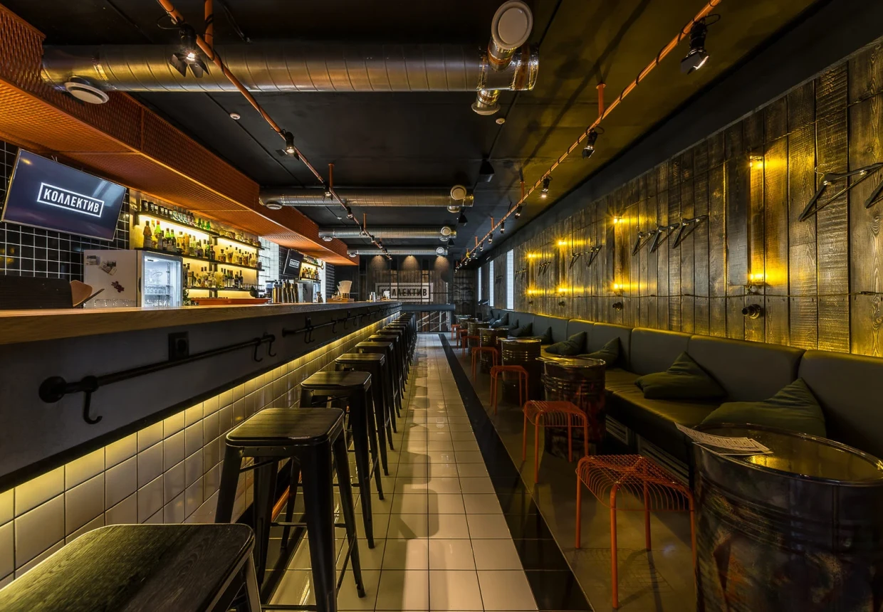 Коллектив — независимый коктейльный бар в Екатеринбурге, в котором есть свои правила (простые и правильные, но почему-то не всем понятные). Снаружи — неприметная серая дверь с микровывеской «Подарки к праздникам». Внутри должен был расположиться вейп-шоп, но не срослось: о прежнем замысле напоминают огромные вентиляционные трубы. Длинная барная стойка, диваны, табуреты, бочки — пространство легко подстроить под себя.
