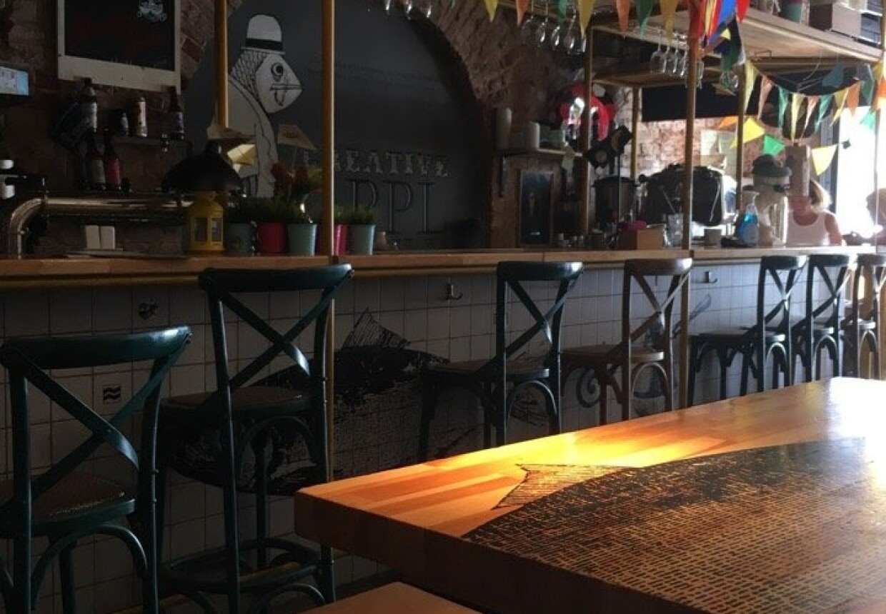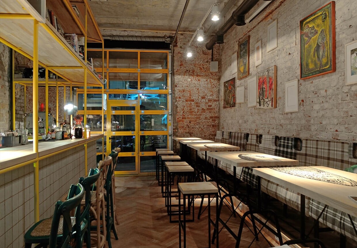Небольшое пространство, наполненное творческими людьми и любопытными деталями интерьера. Тщательно продумана барная карта: крафтовое пиво, необычные алкогольные коктейли, настойки. В меню идеи высокой кухни остроумно адаптированы для “поесть вкусно, но быстро и не очень дорого”.