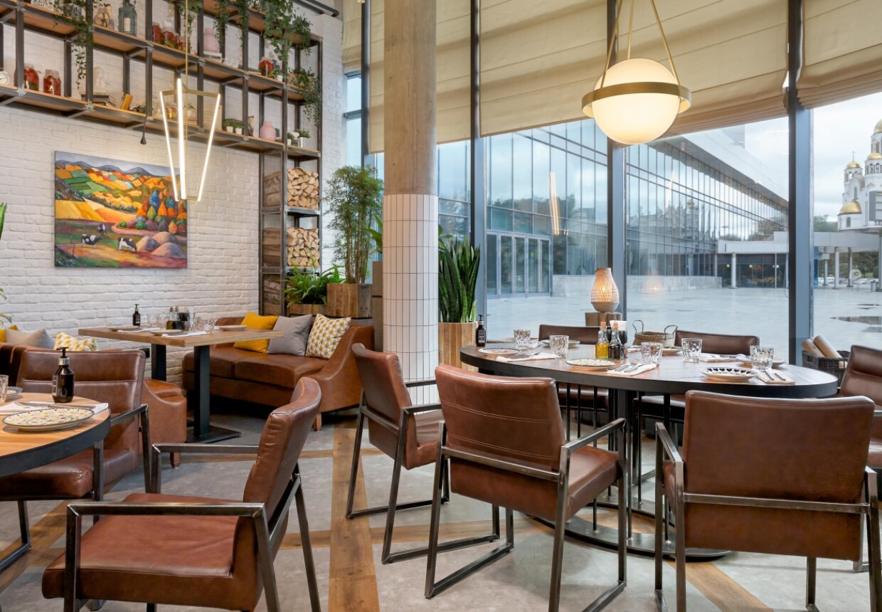 «Сыроварня» — первый проект Аркадия Новикова на Урале. Ресторан расположен на первом этаже кинотеатра «Космос» на набережной реки Исеть.