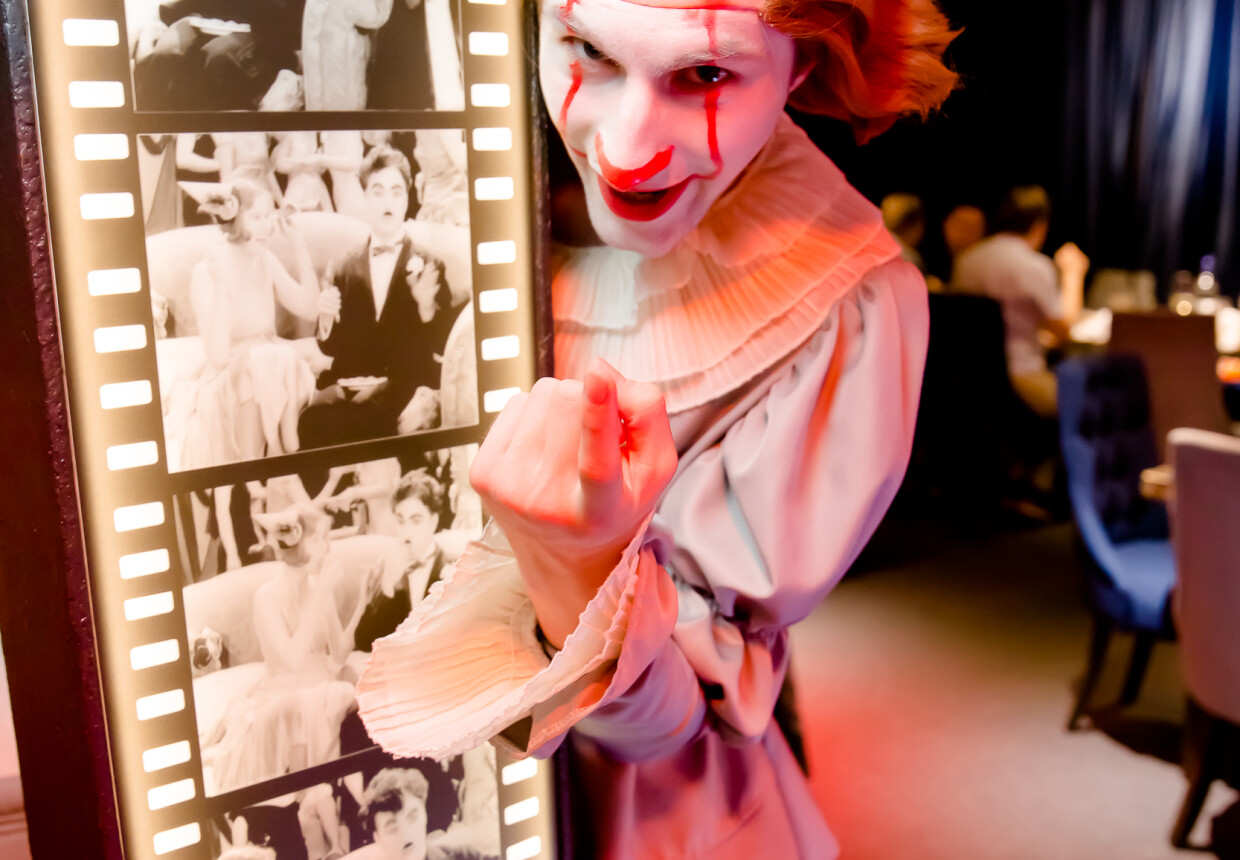 – весь вечер Вас будут обслуживать артисты в образах всемирно известных киногероев, увлекая в «своё кино»;
