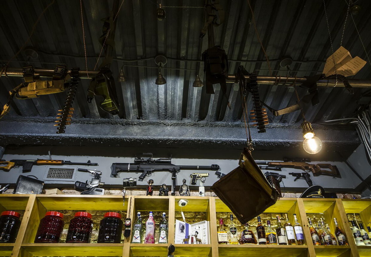 Разведка", расположенная в подвале bc steff, имеет уникальный дизайн, напоминающий армейский бункер. Его стены украшены репродукциями ружей и пистолетов, старинными фотографиями, щитами и касками. В меню представлены блюда русской и европейской кухни, такие как мидии в томатном соусе и креветки в кляре. Кроме того, в баре представлен широкий выбор эксклюзивных алкогольных напитков.