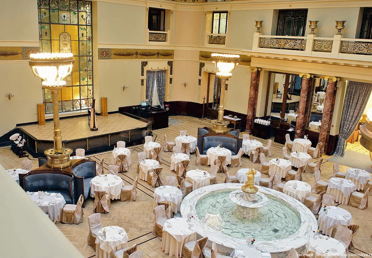 Расположенный всего в пяти минутах ходьбы от легендарной Красной площади, Metropol находится в великолепном здании эпохи модерна. Его большой зал с витражным куполом оформлен в неоклассическом стиле, интерьер украшают бронзовые светильники, колонны, позолоченные зеркала и мраморный фонтан. Ресторан специализируется на завтраках и воскресных бранчах, где предлагаются блины с лососем и красной икрой, а также каши с ягодами и медом и домашняя выпечка. Кроме того, здесь можно попробовать несколько видов блюд азиатской кухни.