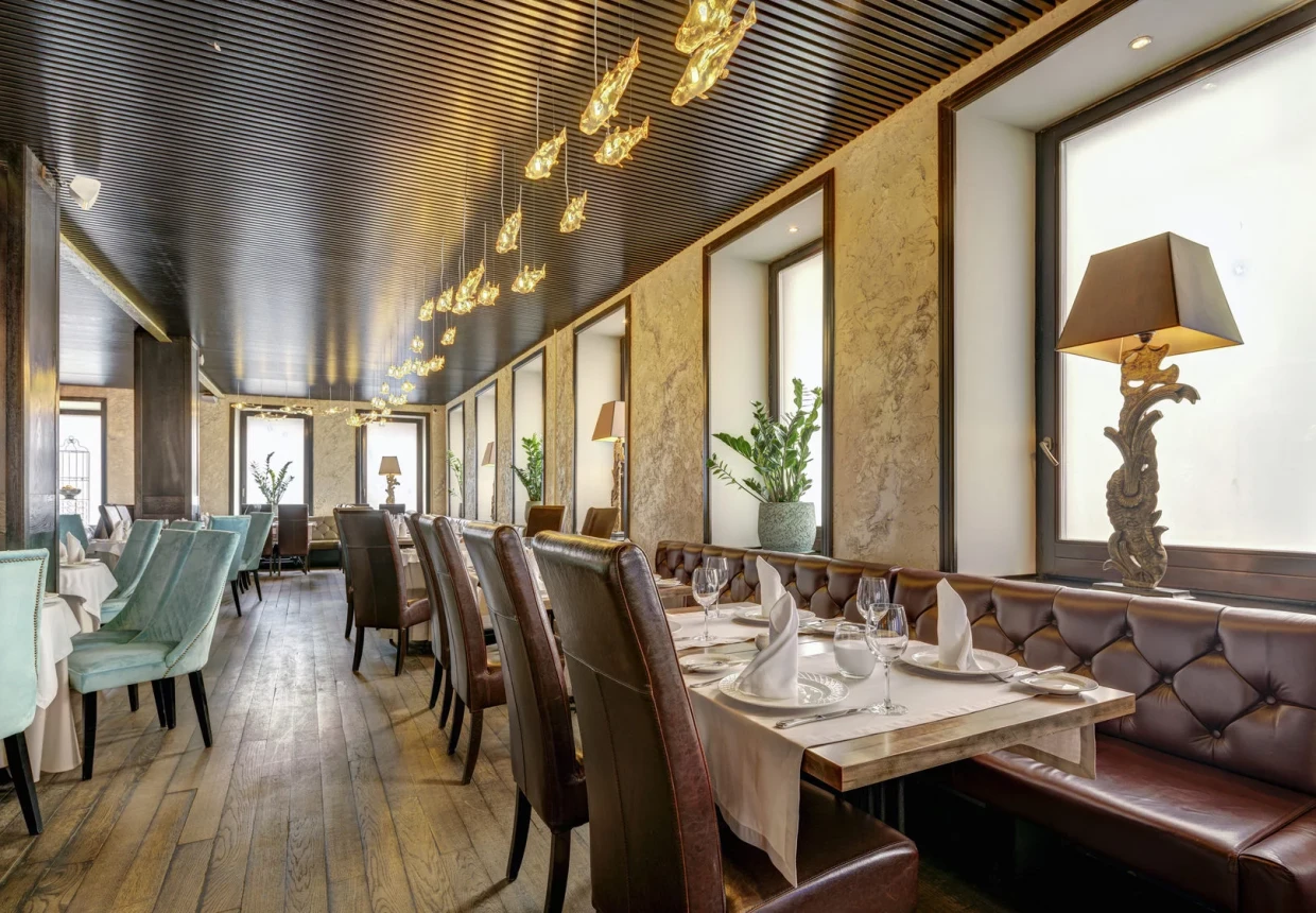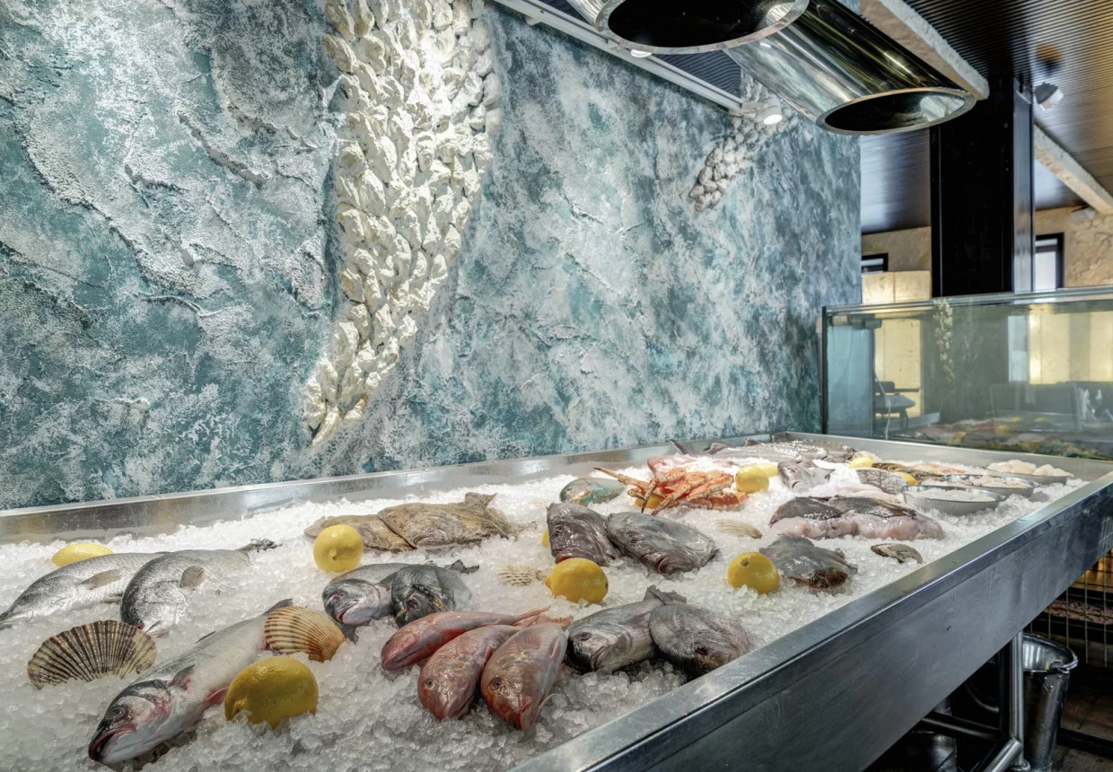 Рыбный ресторан «Рыбный базар» радует любителей морепродуктов и ценителей здорового питания большим выбором даров моря. Ледяной прилавок ресторана приятно удивит большим выбором свежей рыбы: сибас, барамуди, дорадо, ред снеппер, пятнистый окунь, стерлядь, золотой люциан, тюрбо, камбала, пагр, попугай и даже черная треска. В аквариумах – лобстеры, омары, камчатские крабы, морские гребешки.