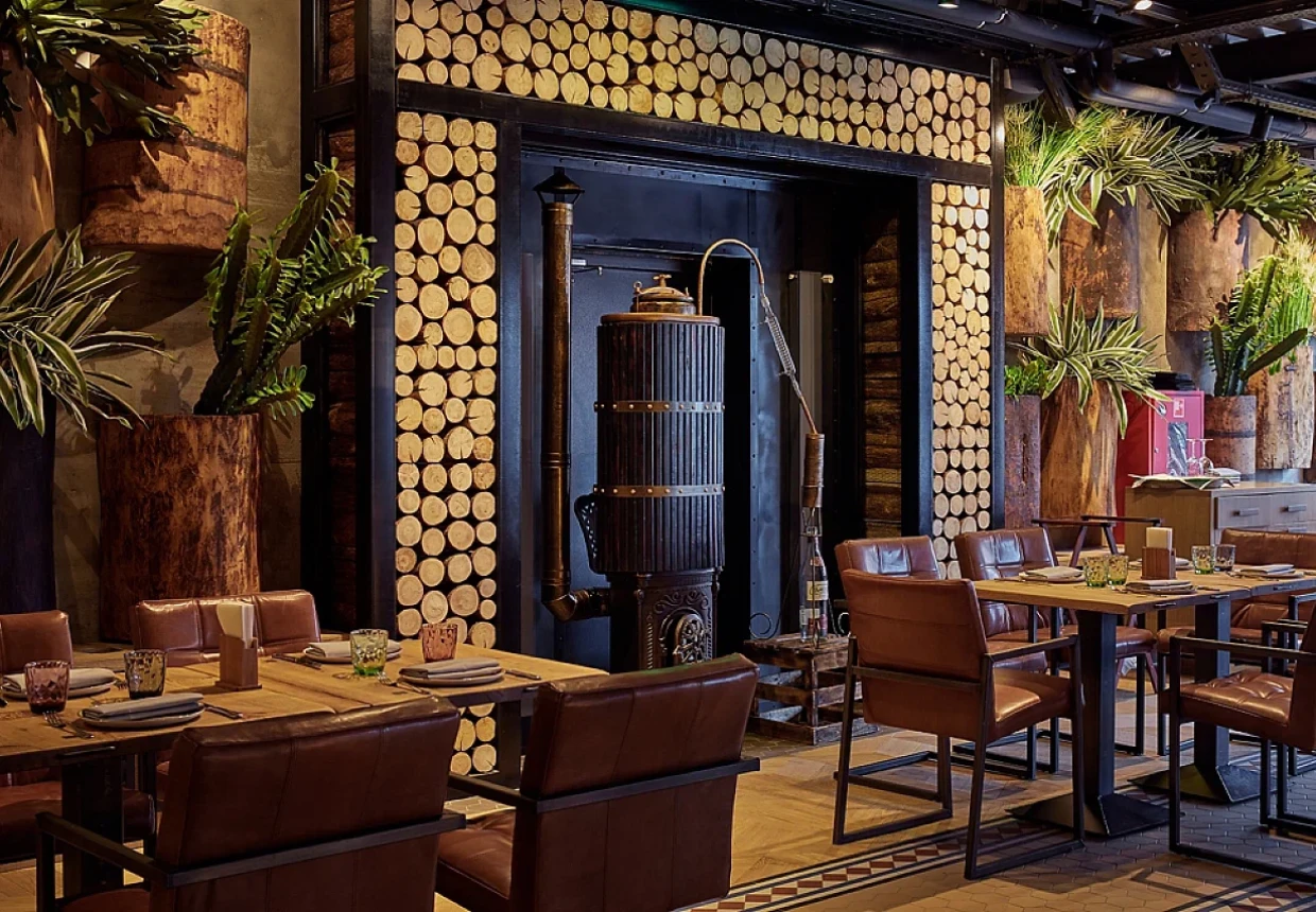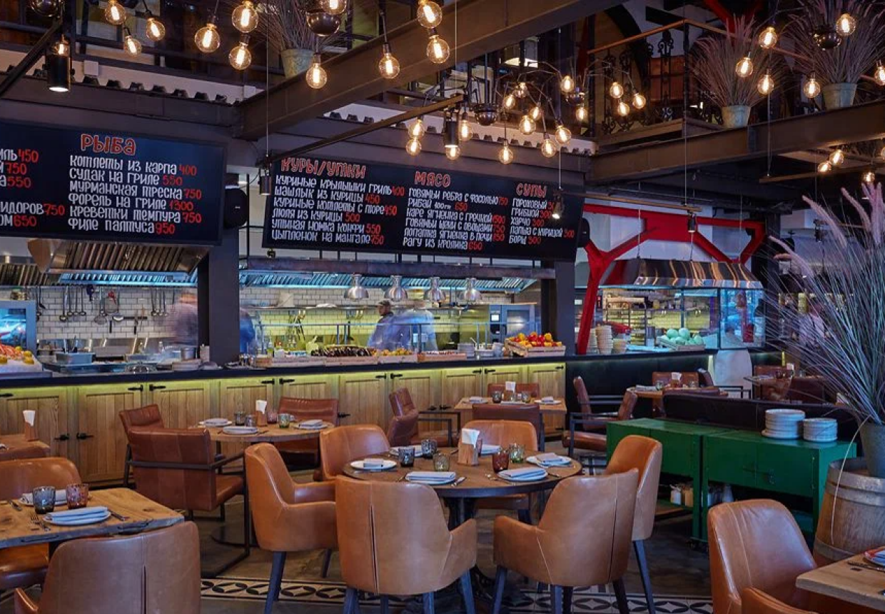 Ресторан Аркадия Новикова на Цветном бульваре привлекает внимание снаружи благодаря шестиметровому валенку ручной работы, который символизирует простор и дух России. Внутри ресторан поражает своими размерами — он занимает два этажа и рассчитан на 400 человек. Кроме того, здесь огромные панорамные окна на обоих уровнях и восьмиметровые потолки.
