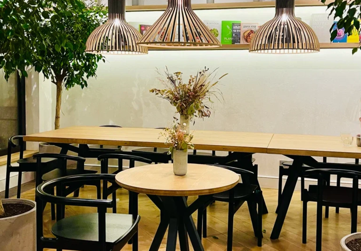 Angel Cakes – это кафе на Патриарших прудах, где особое внимание уделяется здоровому питанию. В меню представлены веганские и безглютеновые блюда, такие как авокадо-тосты, сырники из рикотты и бататовые вафли, а также низкокалорийные десерты, такие как «Павлова» и «Наполеон».