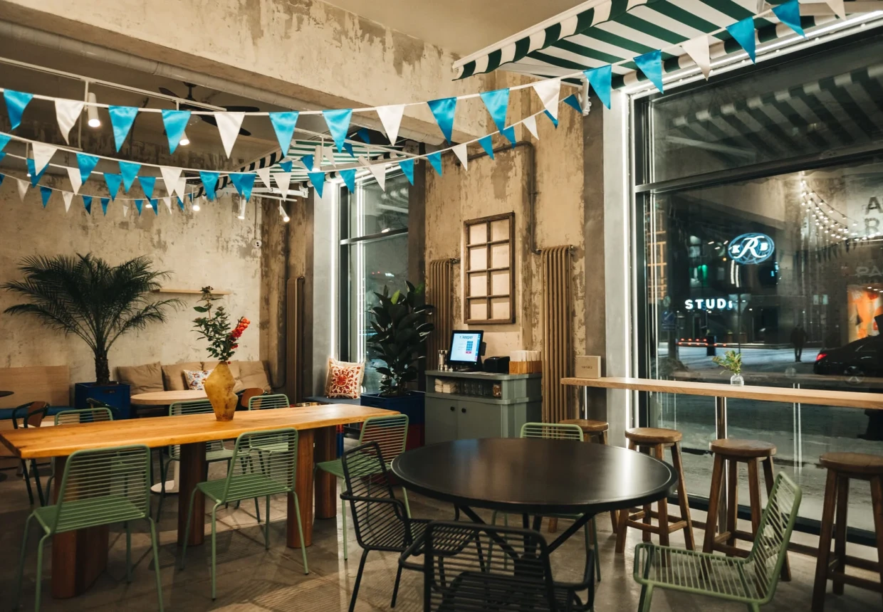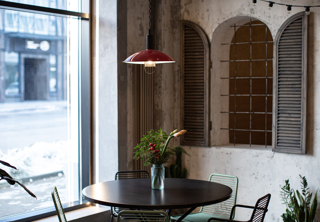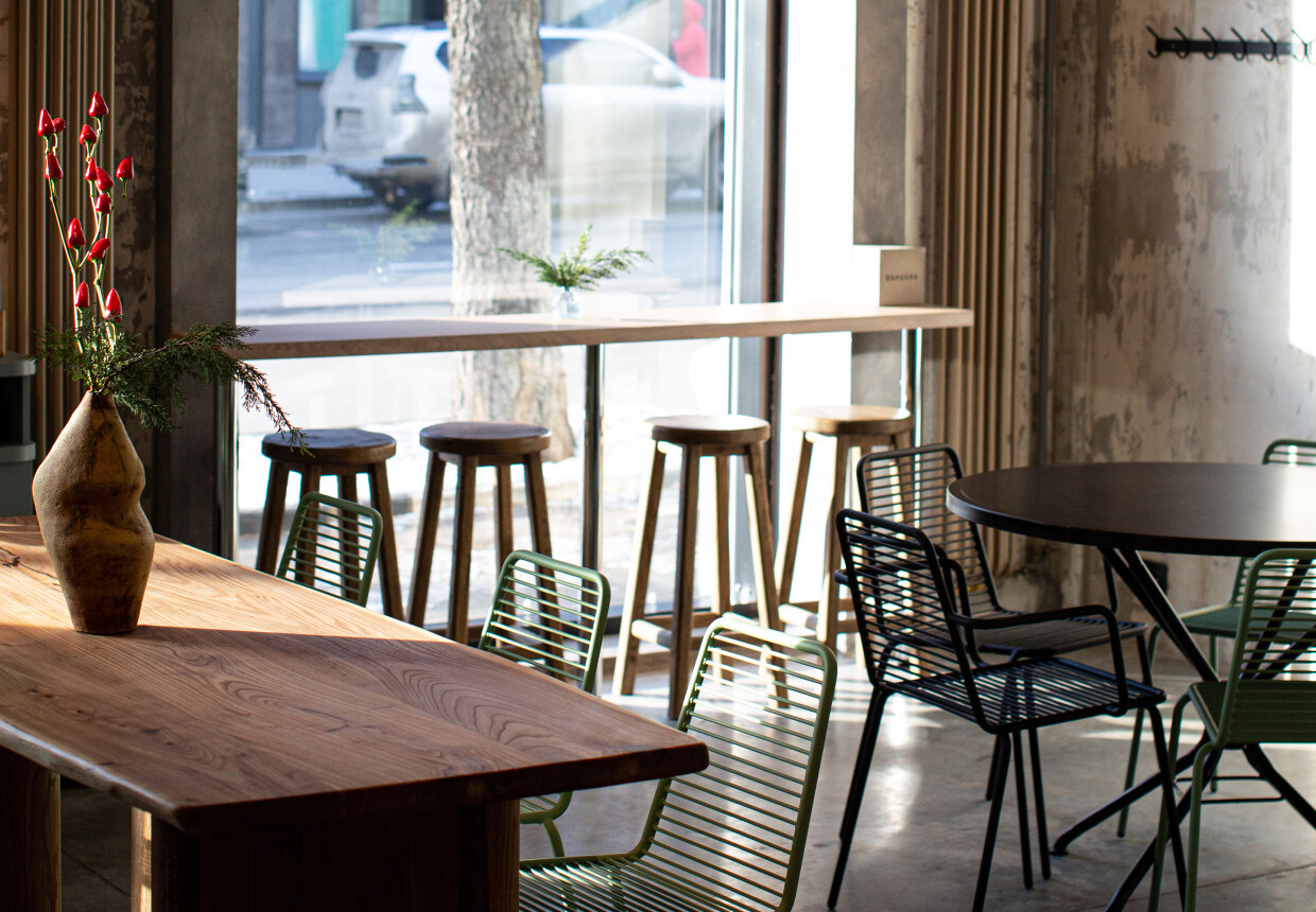 В барной карте — хороший выбор игристых и пенных напитков, коктейли и интересный чай: малиновый с шалфеем, пряный манго и домашний имбирный. Для правильного начала дня есть меню завтраков: подают оцените рулет с маком и йогуртом, вареники, приготовленные по-особому, овсянку, в которую добавляют гранолу и финики.