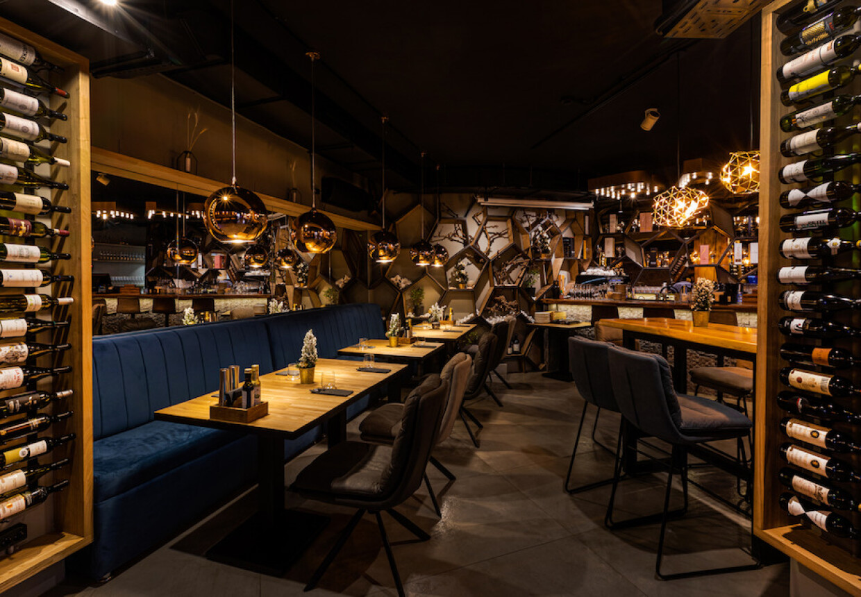 Стильный винный бар на проспекте Маршала Жукова. Главная особенность — большой выбор вина, более 1500 позиций в наличии. Готовят блюда европейской кухни и подают эногастрономические закуски. Для начала предлагают морепродукты из аквариума, тартары и различные мезе, к примеру, хумус, рийет из утки и куриный паштет. Из основных блюд — итальянская пицца, мясные стейки на гриле и рыба, например, сибас в соли. Обстановка в баре кулуарная, в интерьере использовали натуральные материалы и встроили винные бутылки как декор зала.