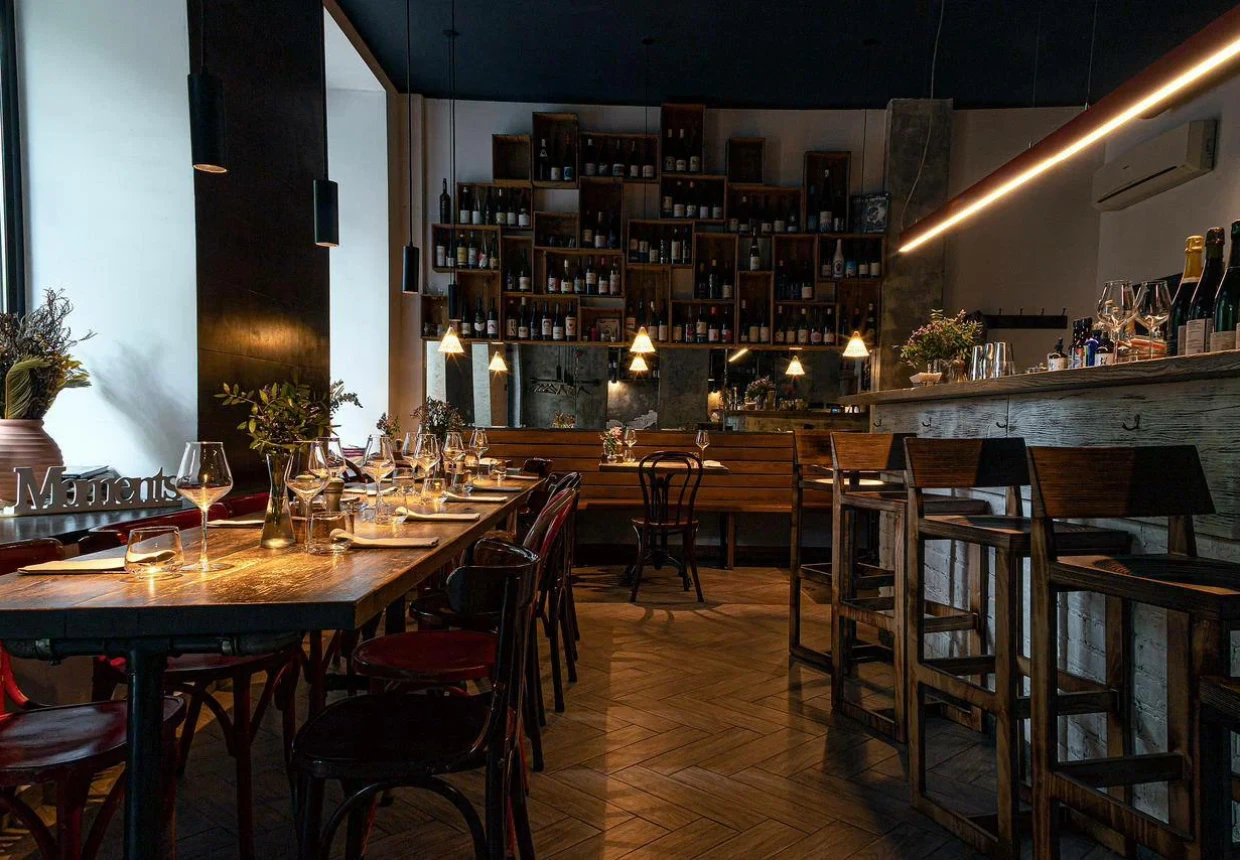 Гастропаб на Татарской улице. В винной карте «Моментс» собрано порядка 80 бутылок несложных вин Старого и Нового света, включая модные оранжевые и розовые. Меню составлено таким образом, чтобы закуски сочетались с напитком: предлагают снэки вроде тартара или креветок в соусе песто. На горячее подают вариации на скандинавские, азиатские и европейские блюда, например, утку в азиатском стиле на еврейский манер. В разделе десертов оригинально подошли к названиям: есть сладость «Шоколадное возмездие», «Шампанское в шоколаде» и «Ежевика. Джин. Лавровый лист».
