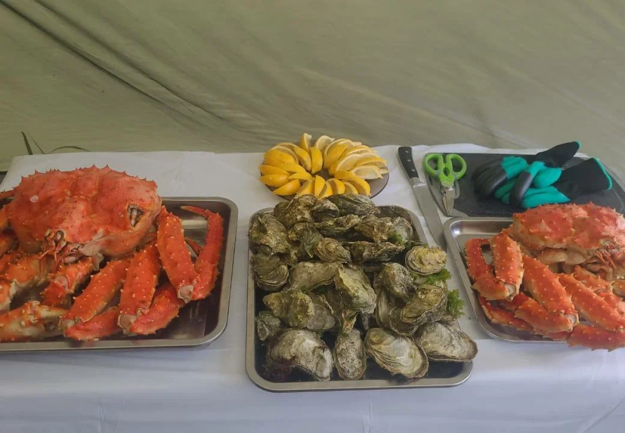 15:00 – Горячий обед в шатрах на побережье озера, мастер-класс от шеф-повара по открыванию устриц, дегустация.