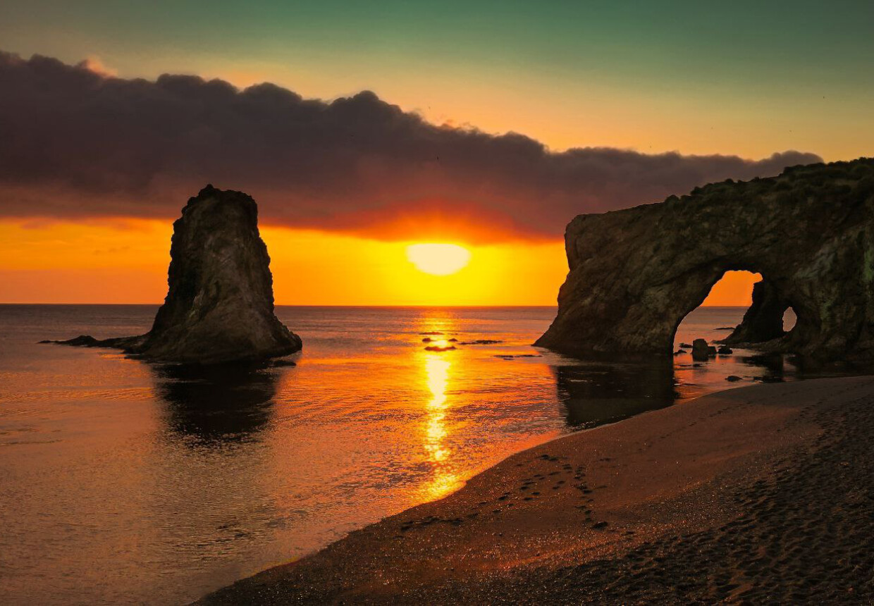 Мыс «Великан» уникальный памятник природы. Это место притяжения и одно из самых красивых и удивительных мест на морских побережьях Сахалина. Скальные арки мыса напоминают о берегах Исландии и Норвегии. Вдоль всего побережья протянулись множество созданных ветром и морскими волнами гротов, стоящих прямо в море пещер, арок и столбов, на которых располагаются колонии птиц.