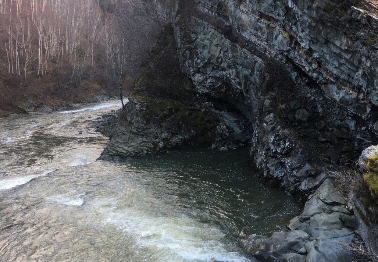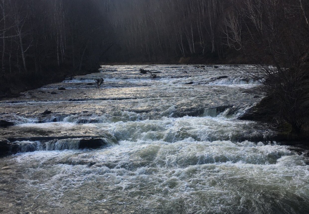 Быковские пороги - это был очень большой водопад, но в советское время его взорвали для того, чтобы дать путь лососевым рыбам. Огромная скала, которая раньше была дамбой для водопада, сейчас служит туристам в качестве смотровой площадки.