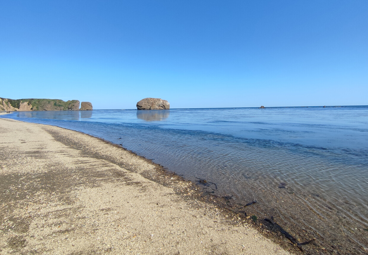 Конечная наша остановка - бухта Тихая. Почему же тихая? Бухта с севера и запада закрыта хребтом Жданко и даже в самую сильную непогоду тут не бывает больших волн. Раньше здесь было лежбище нерп, сейчас они перебрались дальше, к мысу Бурунный.