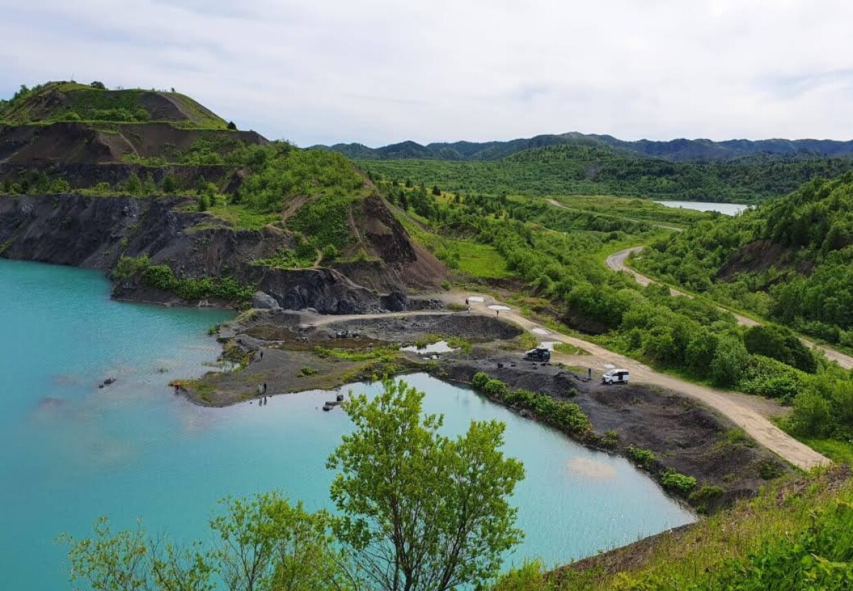 А в нескольких километрах от поселка полюбуемся голубыми озерами Новиковского угольного разреза. В Советское время это были карьеры, в которых добывали уголь. Но после того, как шахту забросили, карьеры заполнились дождевой водой, из-за высокого содержания сульфосоли германаты, цвет этих озер бирюзовый. Смотрятся очень эффектно, особенно в солнечную погоду, а зимой замерзают позже остальных.