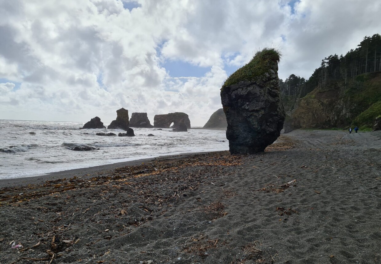 Вдоль всего побережья от мыса Птичий до мыса Великан находится множество созданных ветром и морскими волнами гротов, стоящих прямо в море пещер, арок и столбов, на которых располагаются колонии птиц.