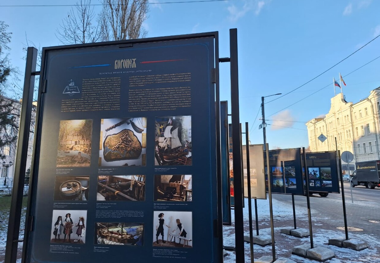 Уличная выставка посвящена кораблестроению в эпоху Петра I. Проект реализуется в рамках Ассамблеи петровских музеев России, его инициатор - Музей Мирового океана, представитель в Воронеже - Музей Петровские корабли.