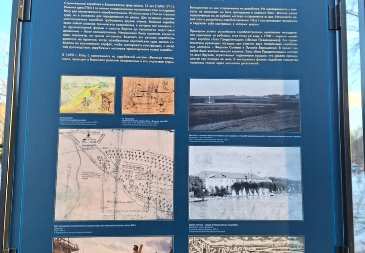 Выставка – результат сотрудничества Калининграда, Санкт-Петербурга, Петрозаводска и Воронежа. На 24 стендах, 6 из которых посвящены Столице Черноземья, рассказывается о том, как зарождался флот, об особенностях строительства первых кораблей, о новых подходах, использованных Петром I, а также о местах Воронежа, напоминающих об этом историческом периоде или связанных с именем императора.