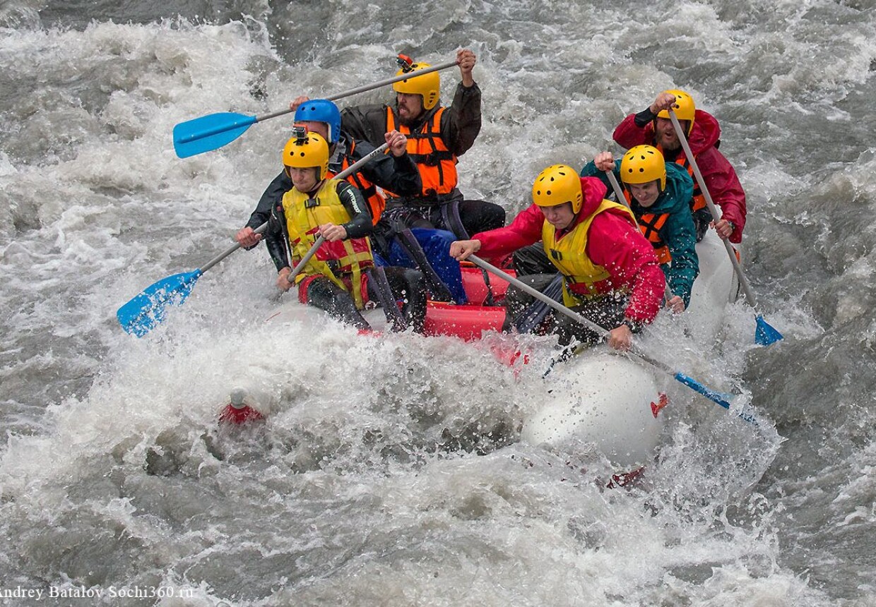 Вас ждут легко проходимые пороги и перекаты, красивые скалы, бурлящая вода и скорость потока реки Мзымта.