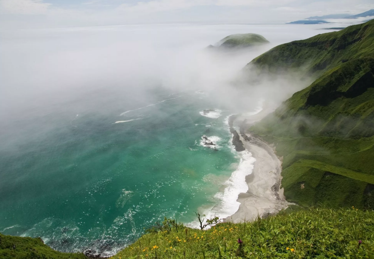 Итуруп - уникальный остров даже для Курильской гряды с ее многообразием природных форм. Вулканы, Тихий океан, Белые скалы, Черный песок, горячие термальные источники… А контраст бирюзы морских волн с зеленью побережья и синевой неба – это просто незабываемо!